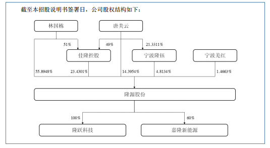 而从股权结构来看,截至招股说明书签署日,林国栋、唐美云夫妇合计控制公司 98.5337% 的股份,为公司的实控人,具体为林国栋直接持有公司 55.8948% 的股份;唐美云直接持有公司 14.3954% 的股份,通过宁波隆钰间接控制公司 4.8134% 的股份;林国栋、唐美云通过佳隆控股间接控制公司 4.8134% 的股份,具体情况如下:
