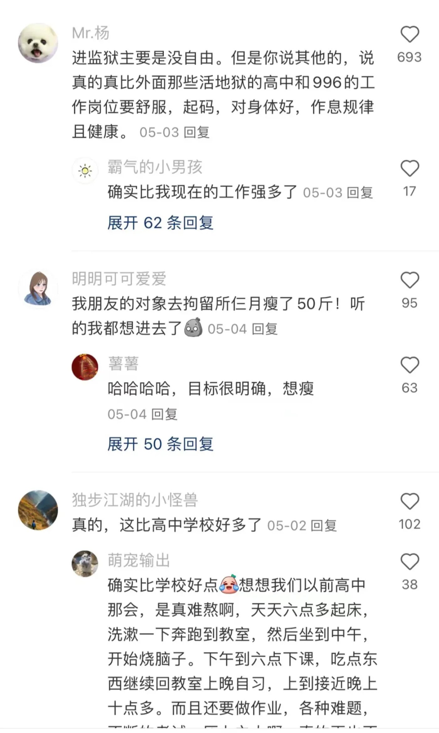 我们的社会接受愿意改过自新的人,同时,自媒体当然是一种合理的谋生方式,但以曾经 「进狱」 作为 「卖点」 来吸引眼球,多少有点 「不以为耻反以为荣」 的意思,评论区的洗白甚至表白则更显得病态和癫狂。以至于在一些法律从业人员对 「进狱」 生活进行正经科普的帖子下面,竟然有不少人对这种生活表示羡慕。这个世界,真是看不懂了。