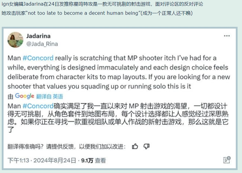 甚至在社媒上有玩家批评该游戏的时候,IGN 女编辑直接回应: