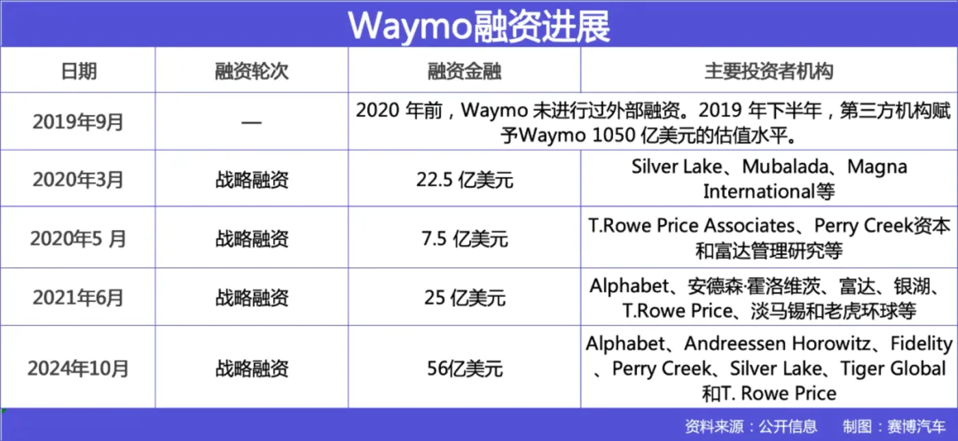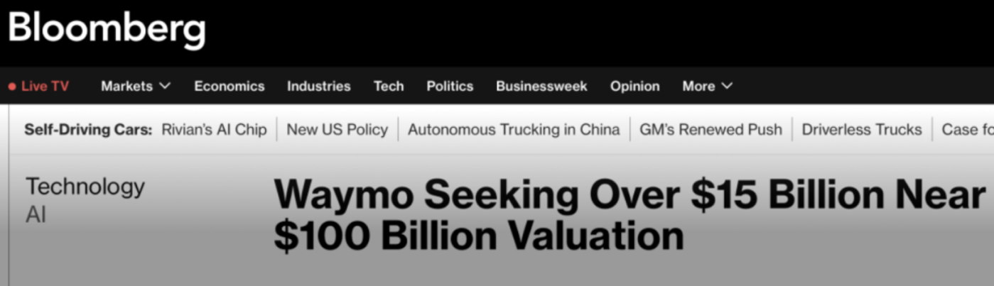 一年多前的 2024 年 10 月,Waymo 完成上一轮融资时,公司估值刚刚突破 450 亿美元。