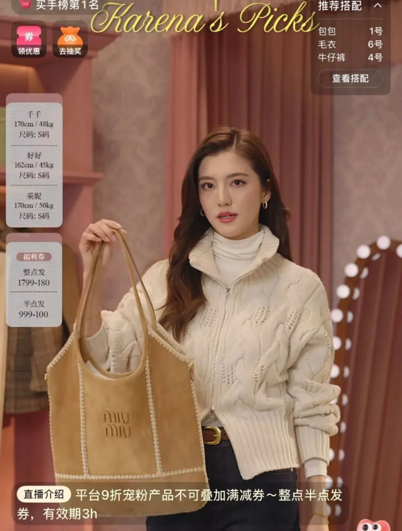 董洁的风格与传统直播截然不同:全程轻声慢语、娓娓道来,少用吆喝和低价促销。她精心布置直播间环境并邀请亲友互动,将好物分享包装成 「闺蜜式生活分享」,精准契合 25–35 岁女性用户的审美诉求。高价小众品牌的销售则让人看到平台用户的购买力:52xx 元的开衫、4xxx 元的名牌鞋屡屡售罄。