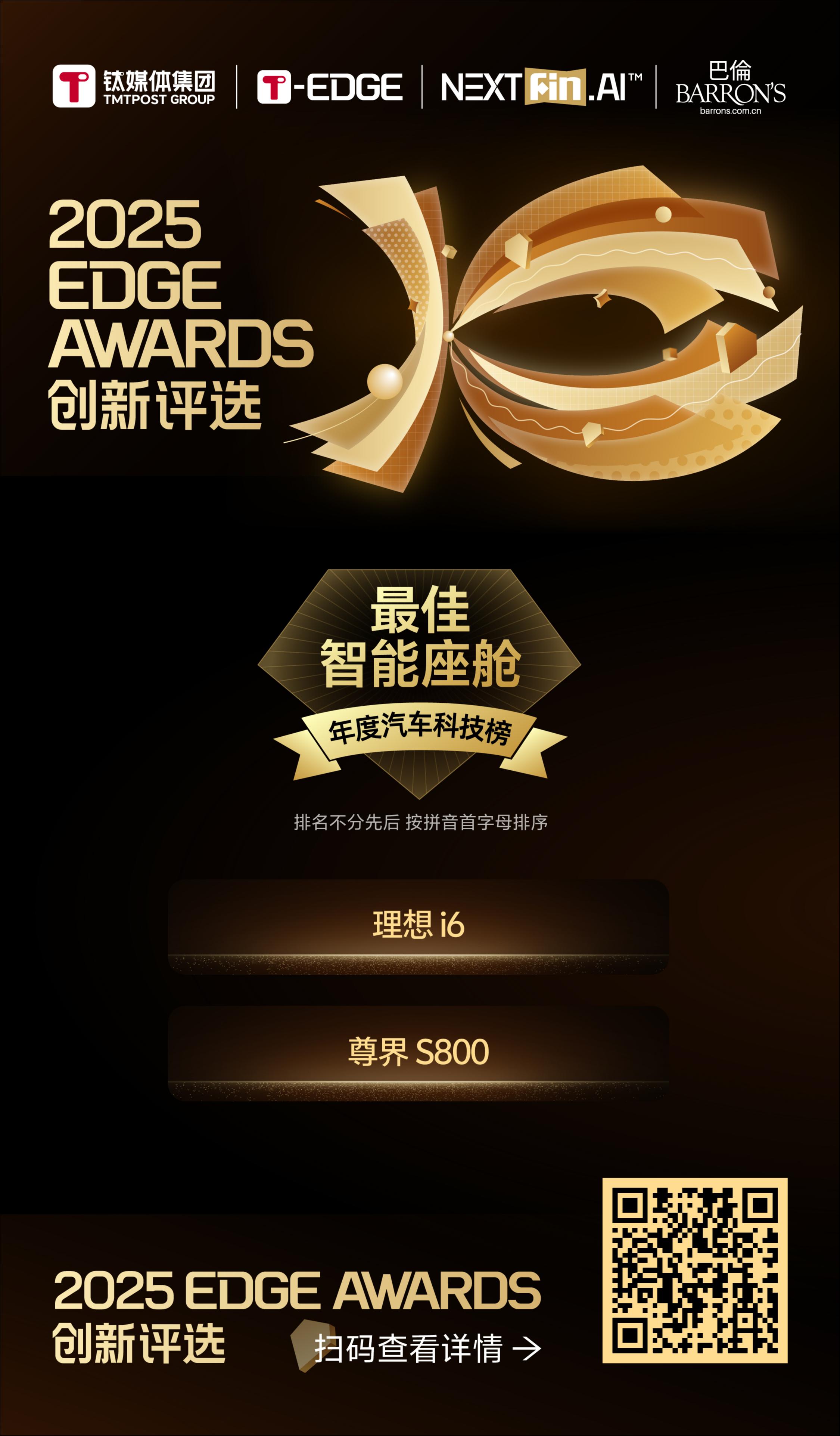 在这样的背景下,钛媒体年度汽车科技榜|2025 EDGE AWARDS 正式揭晓。
