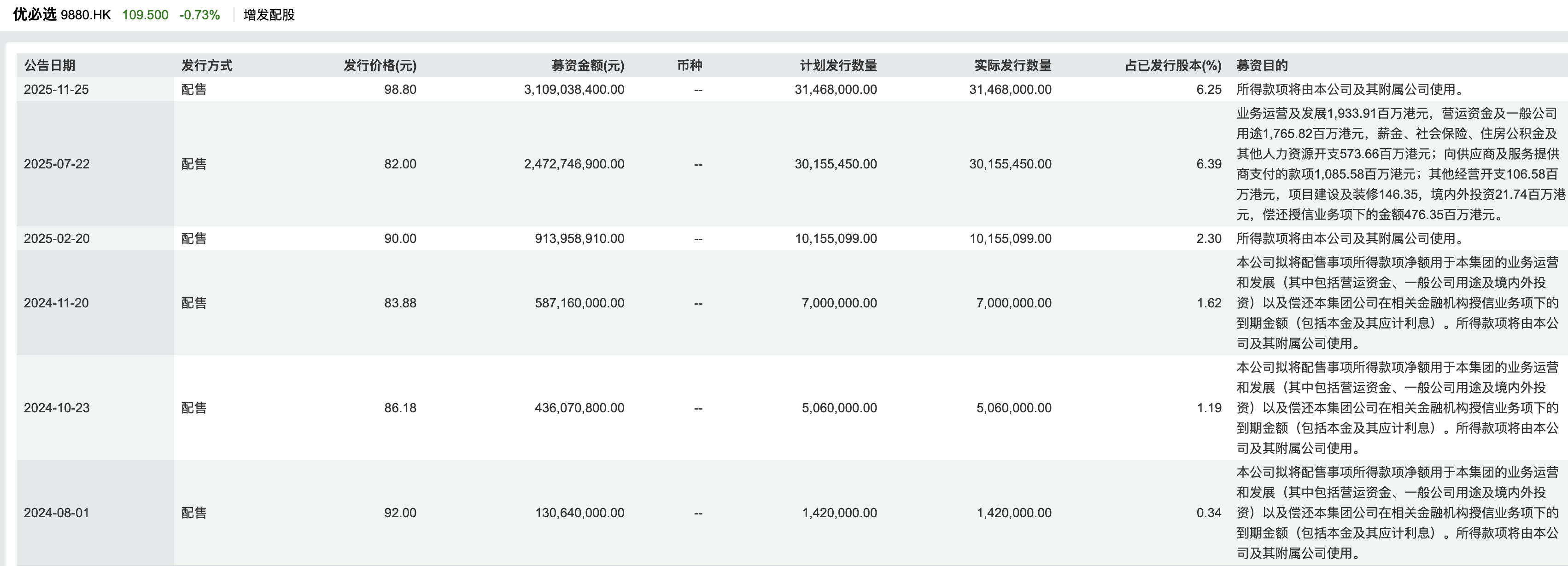持续失血背景下,上市不到两年,优必选已发起 6 次配售,募资金额不断走高,连同 IPO 募资,公司合计募资金额约 83 亿元,实控人周剑的持股比例降低至 23.5%。