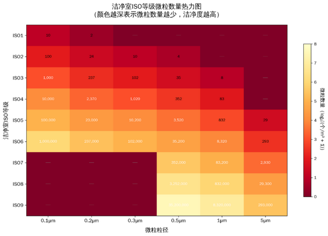 颗粒浓度控制是最基础也是最关键的参数。洁净度级别是一个用来衡量环境中空气颗粒物的数量分类标准,不同的洁净度等级对应着不同的颗粒物浓度,颗粒物的浓度越低,洁净度等级越高。洁净室按粒径在 0.1-5μm 范围的粒子浓度分为 1-9 级 。其中,ISO 1 级要求每立方米空气中≥0.1μm 的颗粒不超过 10 个,ISO 3 级不超过 1000 个 。不同制程节点对洁净度的要求差异显著:28nm 制程通常需要 ISO 5 级 (每立方米≤3520 个 0.5μm 颗粒),7nm 以下制程需达到 ISO 3 级,而 3nm 制程则需 ISO 1 级环境。