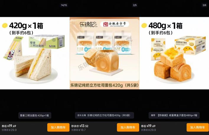 《窄播》 自电商平台搜索看到,与蜜雪冰城店内同款或近似的卡尔顿、乐锦记面包,在两个品牌旗舰店内单价为约 2-3 元,因此尽管蜜雪冰城早餐的 5 元奶是其饮品价格范畴,但早餐套餐组合价却并没让消费者觉得优惠。社交媒体上不少人还在继续呼吁 「蜜雪卷下早餐价」,把 7.9 元与夫妻店更便宜的早餐对比。