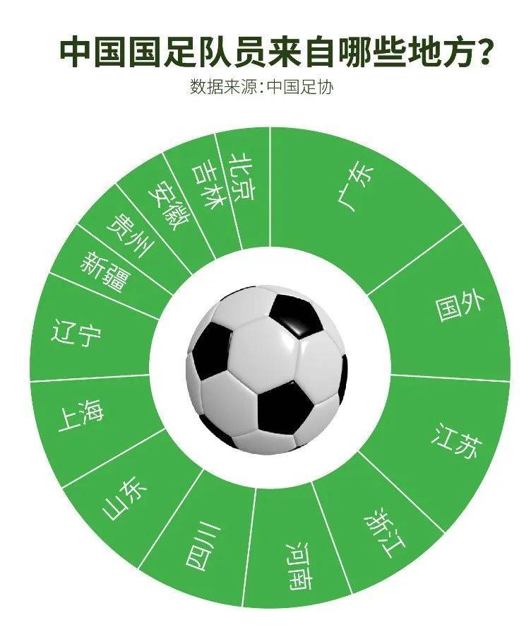 而从出生地来看,在 27 名球员中,除去从国外归化的 3 名球员外,广东、江苏分别贡献了 4 名和 3 名国脚,出生于辽宁、四川的国脚也各有 2 名。由于广州恒大 「倒台」,江苏苏宁集团走下坡路后解散了球队,东北地区 「经济不振」,江苏、辽宁和广州等地球队衰落。除了苏粤辽,球员出生地还包括新疆、贵州、吉林等省份的众多三、四、五线城市。