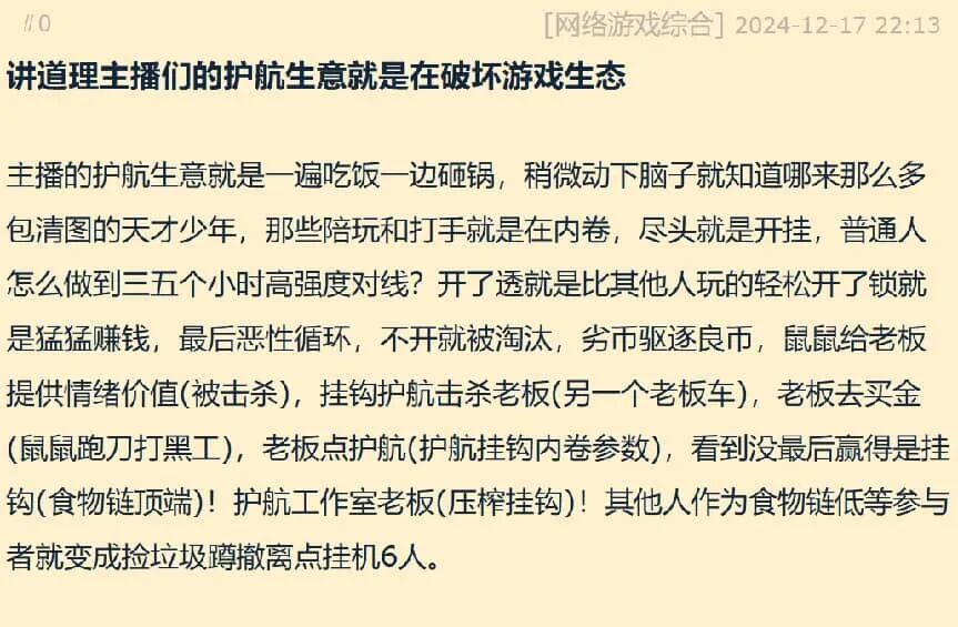 一方面,作为 《三角洲》 下游产业链的“ 护航” 确实助推了社群火爆,但也引起了很多渴望游戏公平玩家的反感。腾讯官方对 “ 护航” 的态度也愈发严厉,在近期宣布侦破了首例外挂陪玩工作室,同时上线 “ 陶片放逐法” 举报警示机制,进一步压缩灰色产业空间。