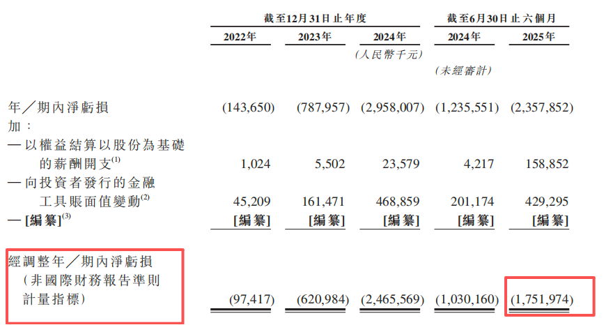 同时,摆在智谱面前的现实是—— 相比营收增长,亏损扩大的表现更为陡峭,几乎是指数级的增长。2022 年至 2024 年该公司经调整净亏损分别为 0.97 亿元、6.21 亿元、24.656 亿元以及 2025 年上半年的 17.52 亿元。