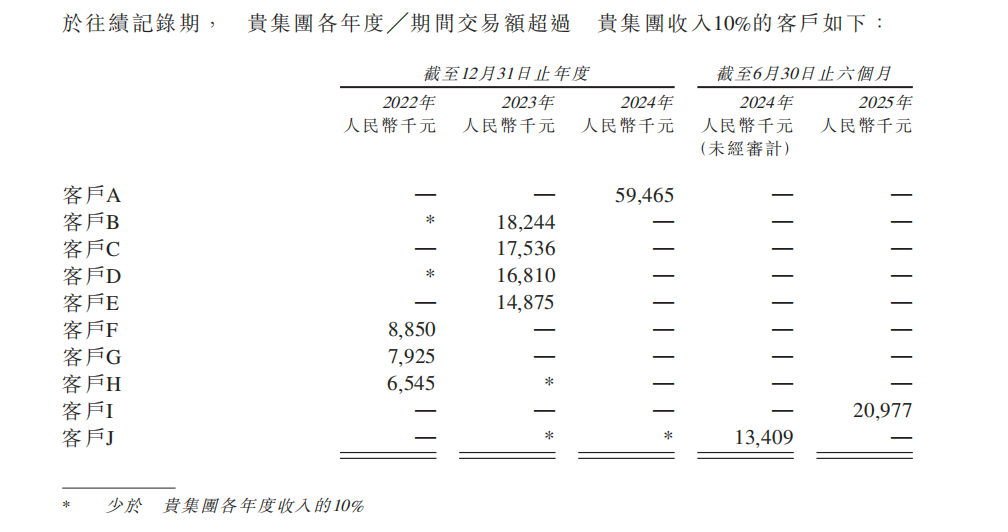 一方面,在报告期交易额超过其收入 10% 的客户报表中,不仅显示了多数大客户只合作了 1~2 年,而且,从 2022 年、2023 年、2024 年到 2025 年上半年,智谱的前五大客户都不重合,大多属于一次性交付的关系,不再有后续。