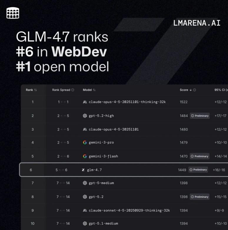 就在 12 月 23 日,GLM4.7 上线,超过 GPT-5.2。