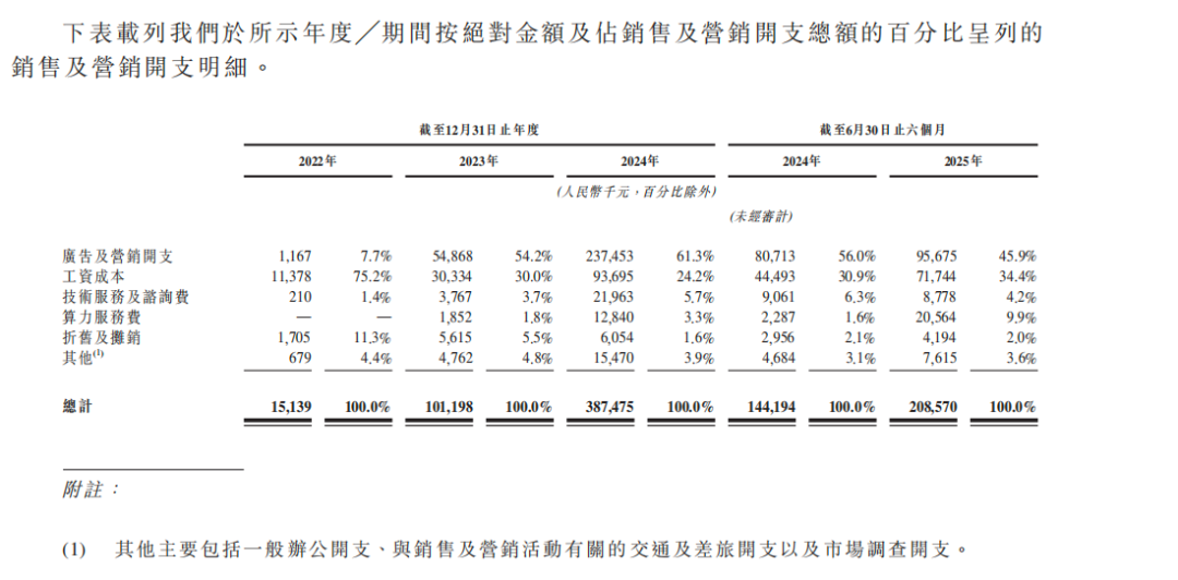 2022 年、2023 年、2024 年及 2025 年上半年,智谱销售及营销开支分别达到 0.15 亿、1.012 亿、3.875 亿以及 2.086 亿元。