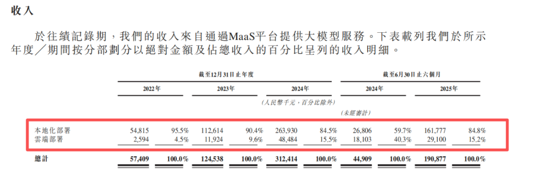 智谱也认识到了这类生意的问题,开始加强“ 细腿” 的锻炼。从 2022 年到 2025 年上半年,云端部署的收入占比从 4.5% 增加到 15.2%,试图改善“ 定制化路径依赖” 走向“ 标准化服务” 偏 SaaS 的模式。