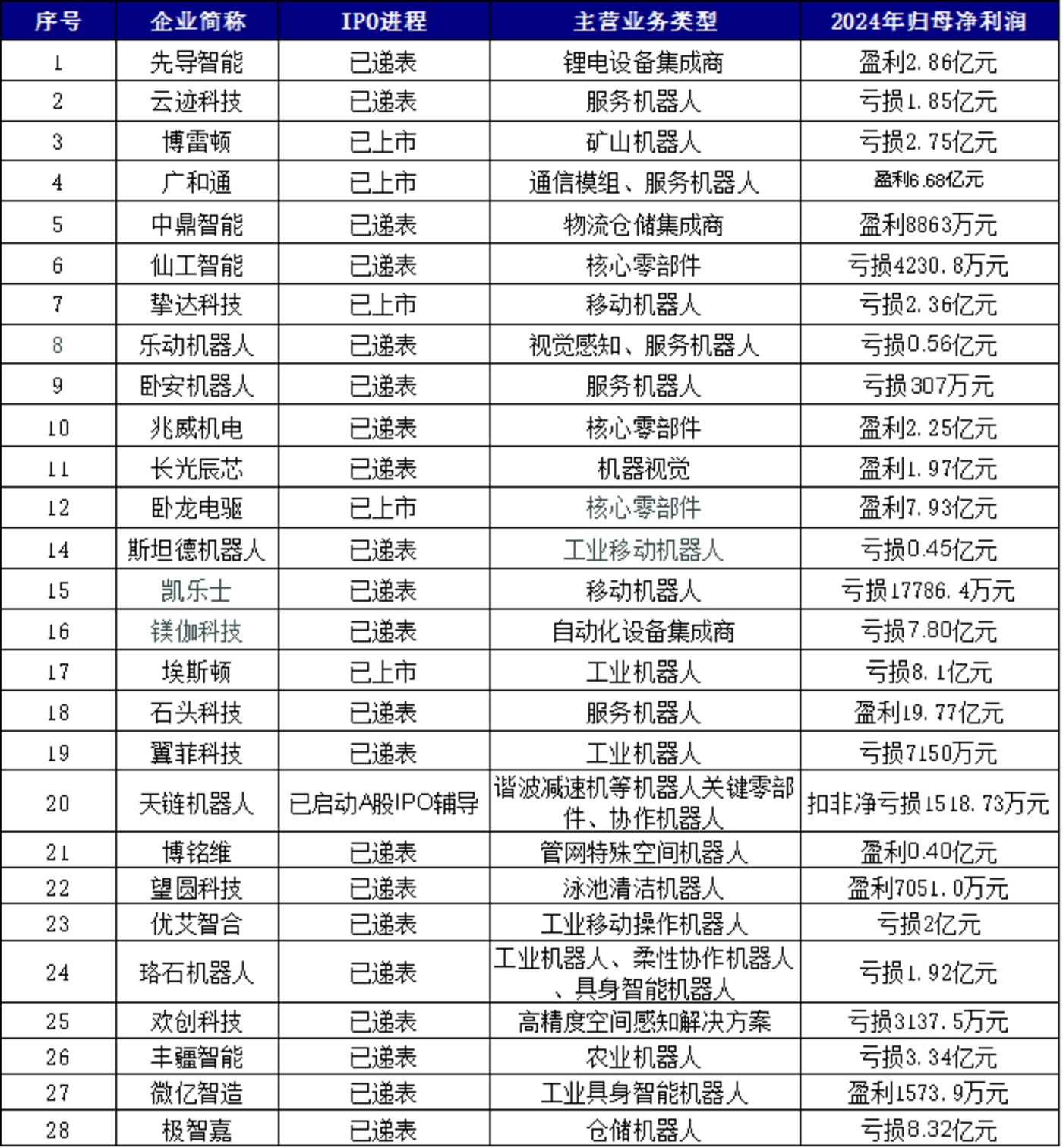 还有一批机器人企业已经走到了 IPO 决赛圈。截至 12 月,今年已有超 30 家机器人产业链企业排队递表,覆盖核心零部件、整机制造和系统集成等核心环节。
