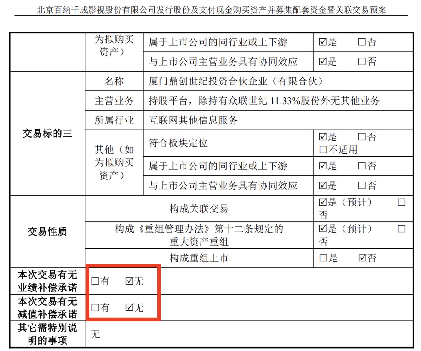 百纳千成将通过发行股份及支付现金方式收购众联世纪 100% 股权,该笔收购将分为三个部分,包含一笔直接收购和两笔间接收购,预计构成重大资产重组。为此次并购,百纳千成还将同步募集配套资金,但并购交易不以募资为前提。