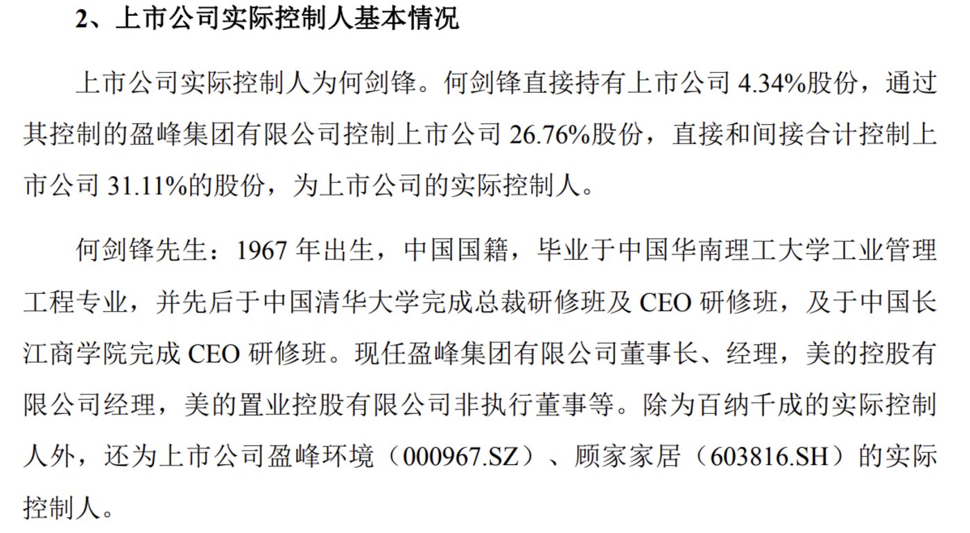 2018 年,华录百纳并购踩雷巨亏 34 亿元,危机之际,何剑锋联手父亲 (美的创始人何享健)18 亿元拿下华录百纳控制权,此后,何剑锋又通过其控制的盈峰集团开启掌舵之旅。根据公开信息,盈峰集团背后的 「盈峰系」 早期仰赖美的生态成长,被视为独立于美的的资本 「二代」。