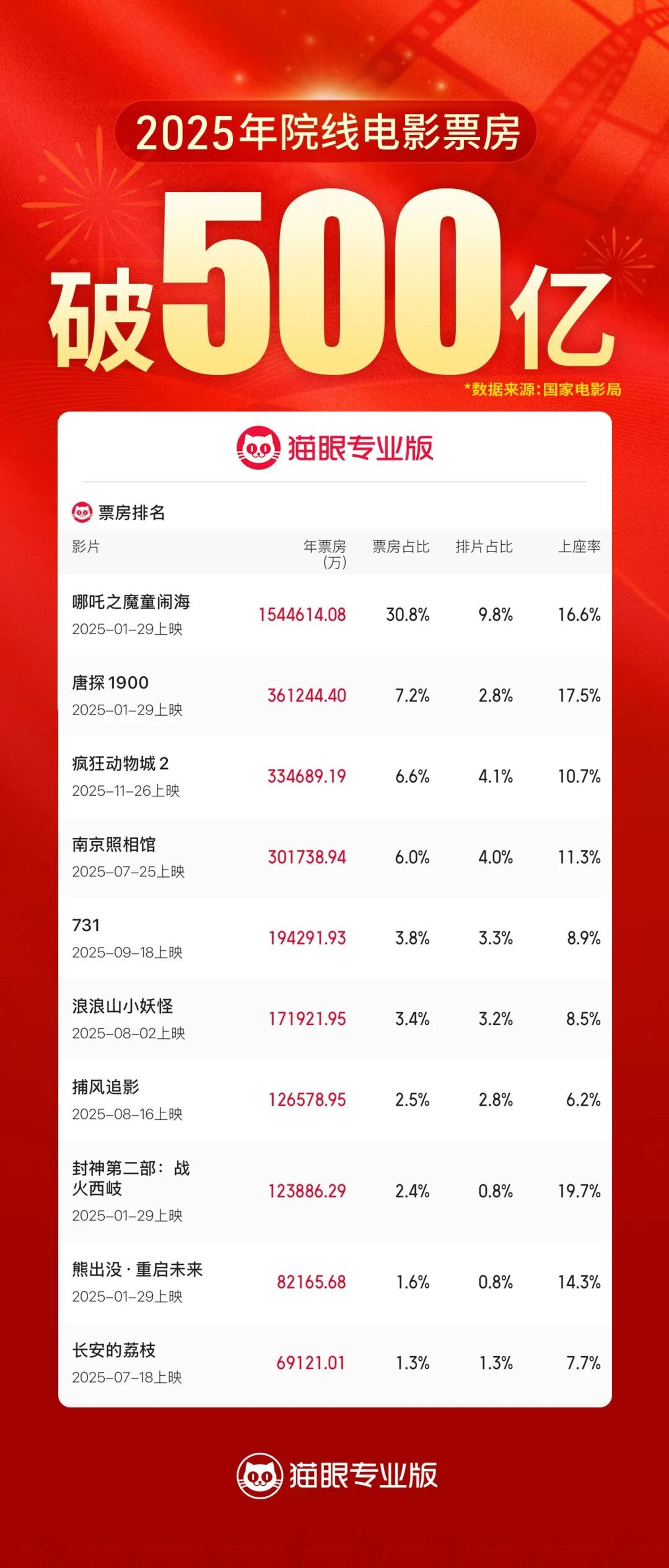 2025 年中国电影总票房已突破 500 亿大关,其中动画电影贡献了近一半的惊人份额。