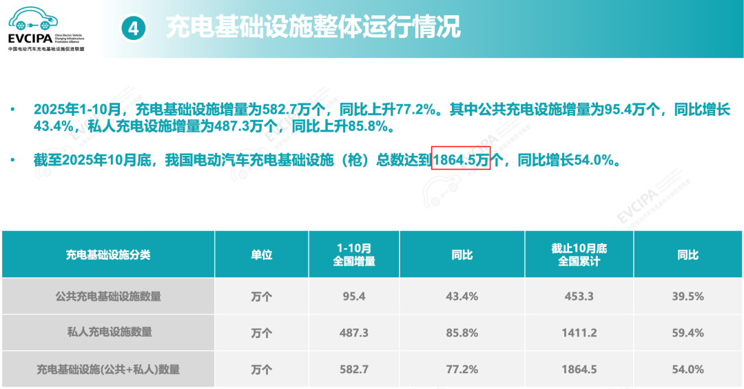 图/截至 2025 年 10 月充电基础设施整体运行情况 来源/互联网 新能源观截图