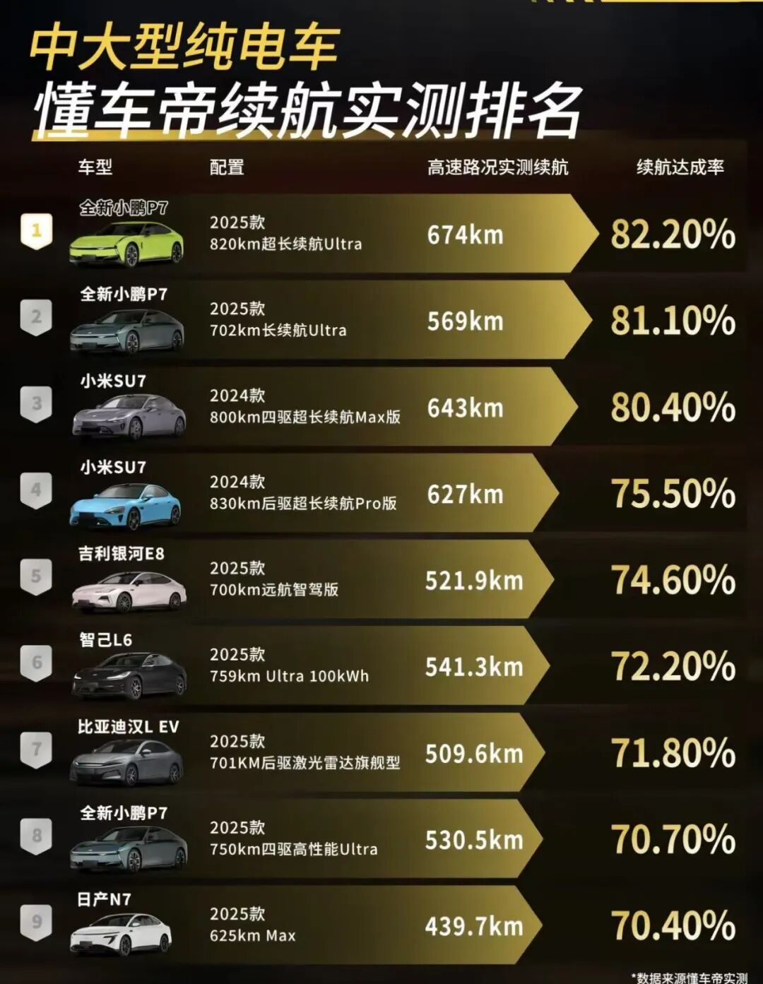 图/实测高速续航能力排名 来源/互联网 新能源观截图