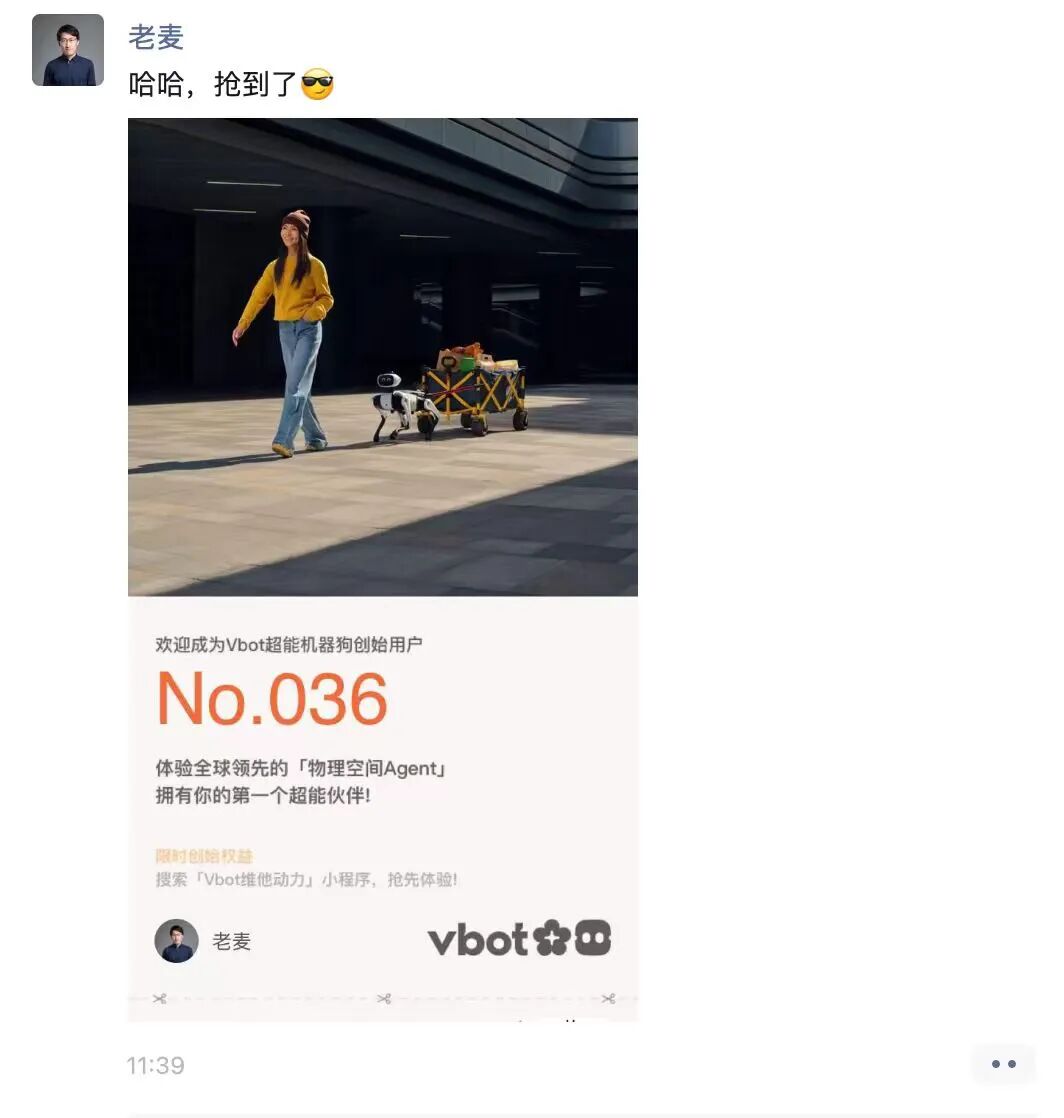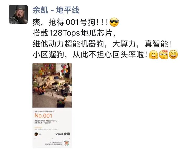 地平线创始人兼 CEO 余凯,更是在预售启动第一时间即抢下 001 号订单,地瓜机器人 CEO 王丛也晒出订单并确认,Vbot 搭载了其自研的 S100P 芯片。
