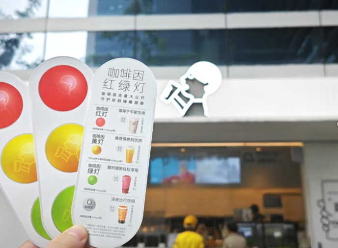 上个月,喜茶推出 「咖啡因红绿灯」 标识,小于 50mg/杯的标绿灯,50~100mg/杯的标黄灯,大于 100mg/杯的标红灯,建议过了中午就不要喝了。