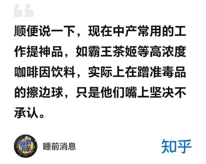 严格来说,“ 睡前消息” 的核心指控,并非凭空捏造。咖啡因在中国确实被列为第二类精神药品进行管制,具有成瘾性。其指出霸王茶姬利用高浓度咖啡因的成瘾性来促进用户复购,这种商业行为存在严重的法律和伦理争议。