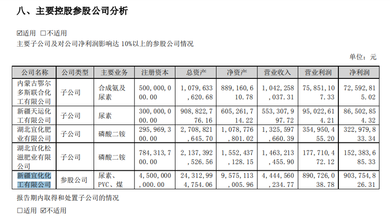 至 2020 年 9 月,湖北大江退出新疆宜矿,新疆宜化接手拿下其所持 41.075% 股权,新疆宜化持股比例增加到 53.925%,成为新疆宜矿的大股东。