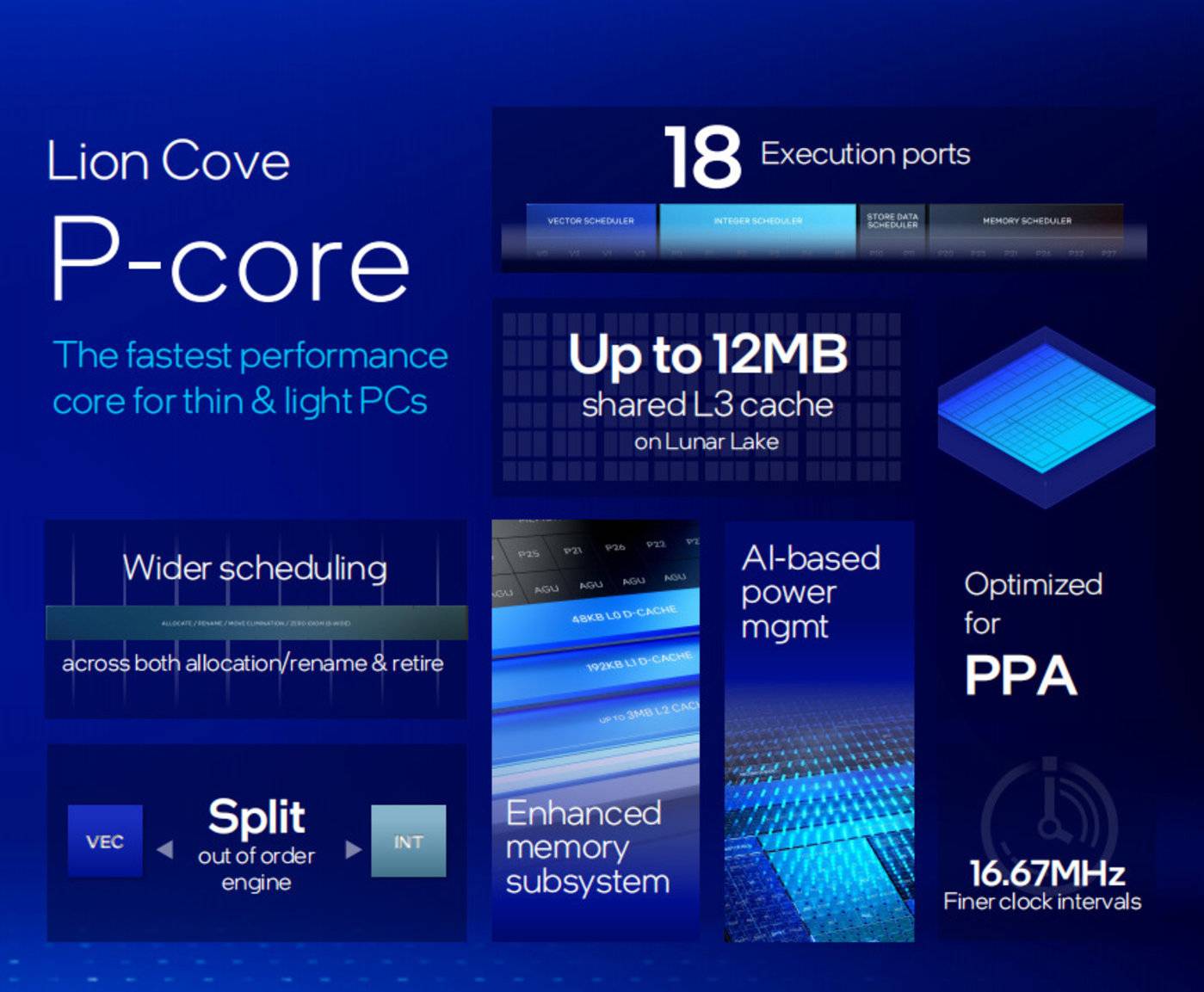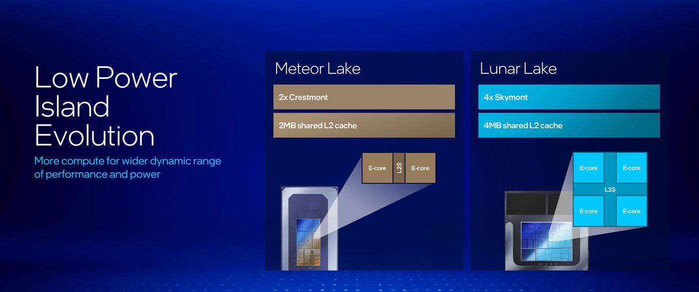 Lunar Lake 的性能核心与能效核心皆有微架构的升级。