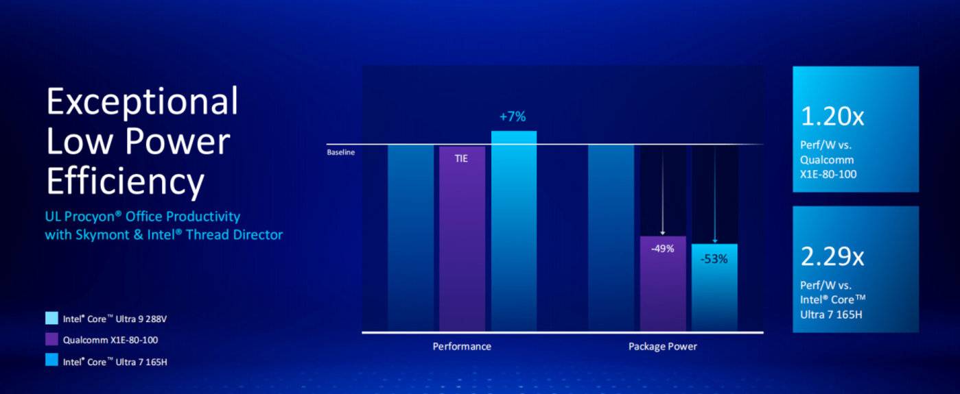 在常用办公、日常使用场景中,对比 Ultra 7 165H,Ultra 9 288V 整体功耗下降最高可达 50%。