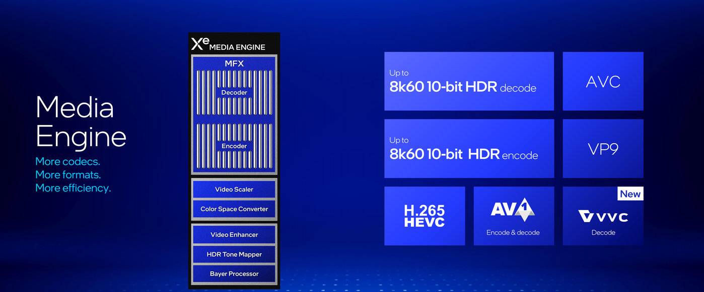 核显的媒体引擎则保持了英特尔一贯的优势,如果平常有轻度的视频剪辑需求,那么凭借着强大的媒体引擎,硬件编解码对视频格式有更广泛的支持,英特尔酷睿处理器就是一直以来在这方面更好的选择,这点依旧是没有变的。