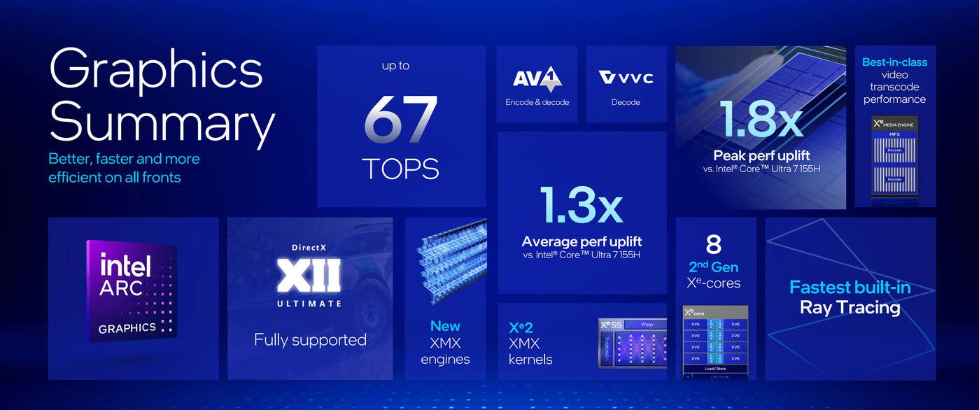 从个人的角度来出发,对于 Lunar Lake 这种产品的目标适用人群和使用场景,图形性能其实并不是一个重要的配置点,哪怕是使用更老的图形架构、更低的规格,在办公和学习场景下其实都几乎不会造成什么影响,但英特尔在 Lunar Lake 上首发自家的 Xe2 图形架构其目的之一肯定是要 「秀技术」,自从 AMD 将 Vega、RDNA 图形架构搬到移动端锐龙处理器后,英特尔酷睿的核显在游戏性能方面就一直落后,直到上代才勉强能掰掰手腕,而英特尔目前的境遇显然需要的是在各方面都要展现出自己的硬实力,对竞争对手实现全方位的领先,才能扭转这几年来不利于自己的市场因素。
