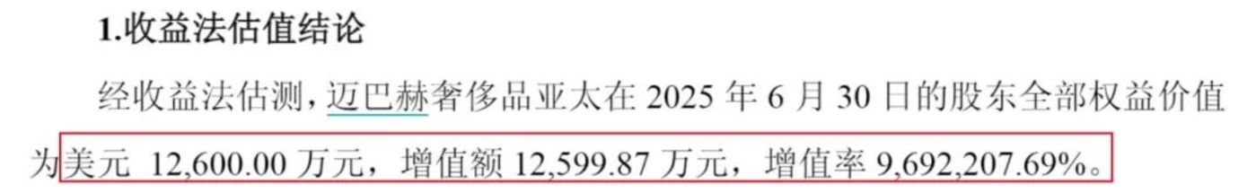 到了 10 月,又宣布拟通过控股子公司老凤祥香港投资,认购 Maybach Luxury Asia Pacific Co. Limited(迈巴赫奢侈品亚太有限公司,以下简称 「迈巴赫亚太」) 配发的 2000 股有投票权普通股,占发行后迈巴赫亚太股权的 20%,认购总价款为 2400 万美元,增值率高达 9.69 万倍。