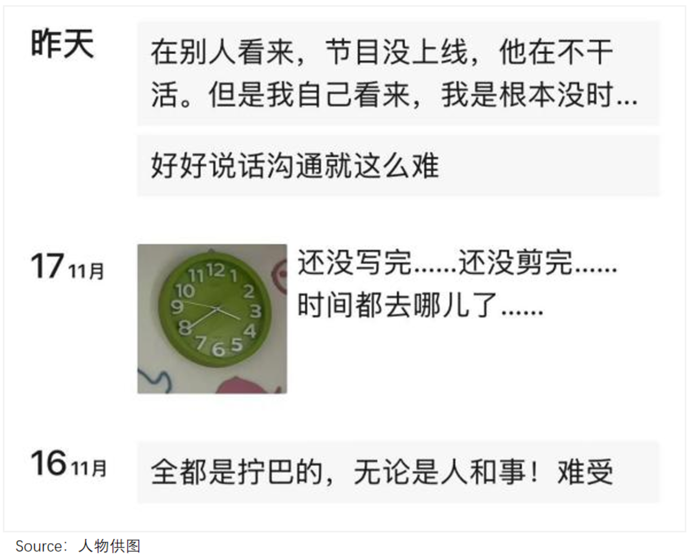 自知理亏的 VE,再也不敢提起这事,可每个录制到凌晨的深夜,想到望不见光明的前路,还是忍不住发朋友圈吐苦水。