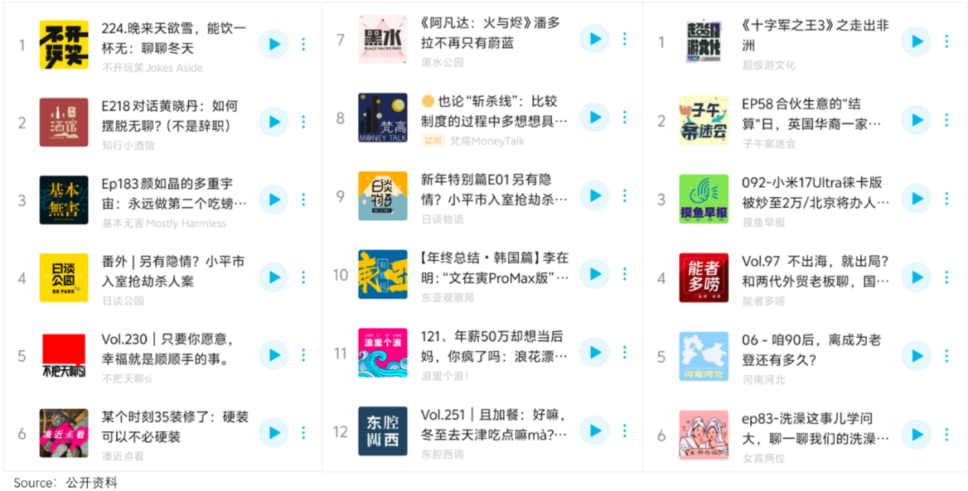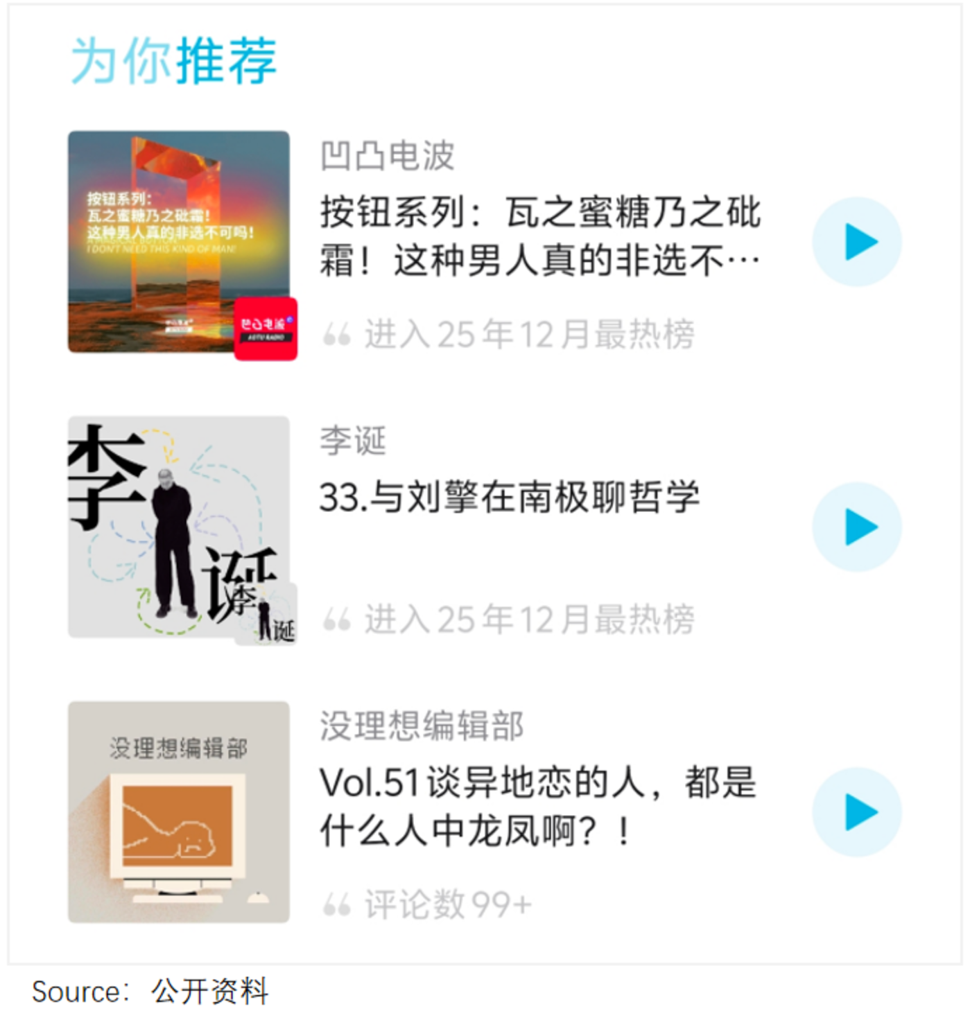 一旦这些强势个人 IP 或专业品牌空降,听众的注意力便会被瞬间虹吸——这一点,从平台推荐榜长期被少数熟悉面孔 「霸榜」 就可见一斑。
