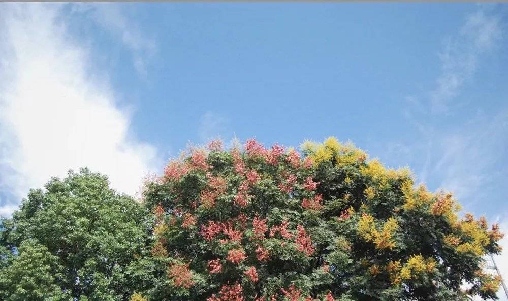 叶佳租住的小区门口,开花的栾树图源:受访者