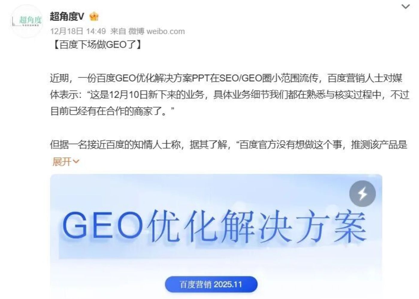 最近,一份 「百度 GEO 营销方案」 在 AI 圈里流传,好多网友疑问 「百度下场做 GEO」 了?