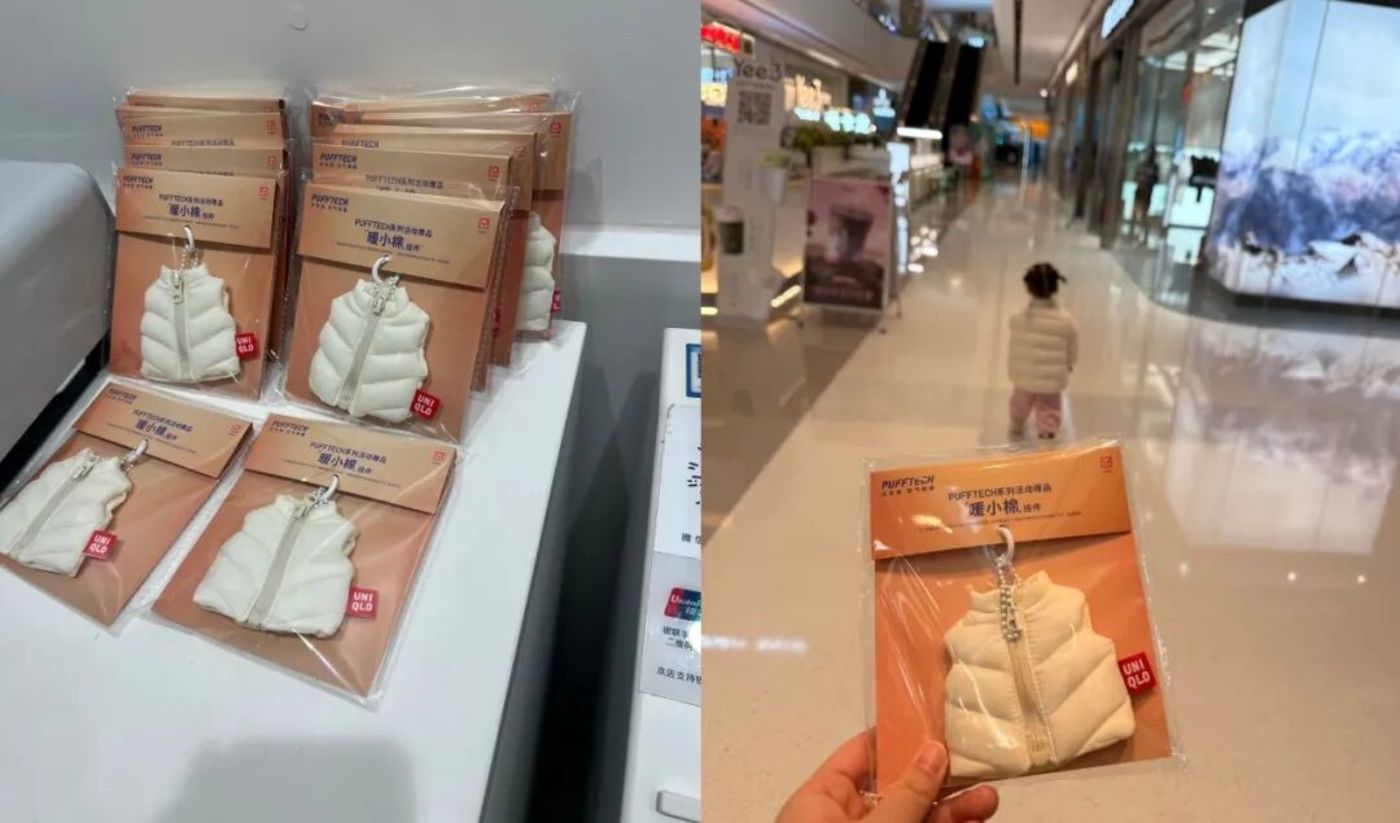 这件等比例缩小的棉服马甲,是一款名为 「暖小棉」 的优衣库挂件,它不仅可以作为背包、衣服的单独装饰,还可以穿在迷你娃娃的身上,让它们过冬时成为最靓的仔。