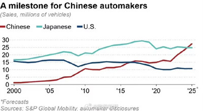 中国车企 2025 年有望登顶全球新车销量榜首,终结日企二十余年霸主地位