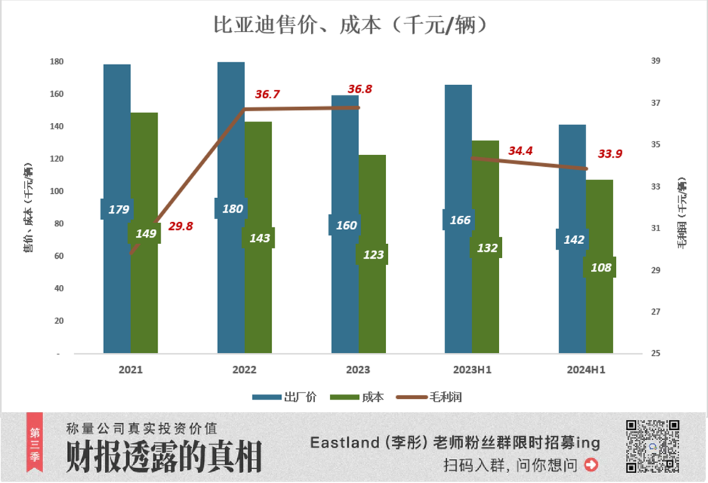 2023 年,比亚迪销售均价回落至 16 万元/辆,单车毛利润几乎未变;
