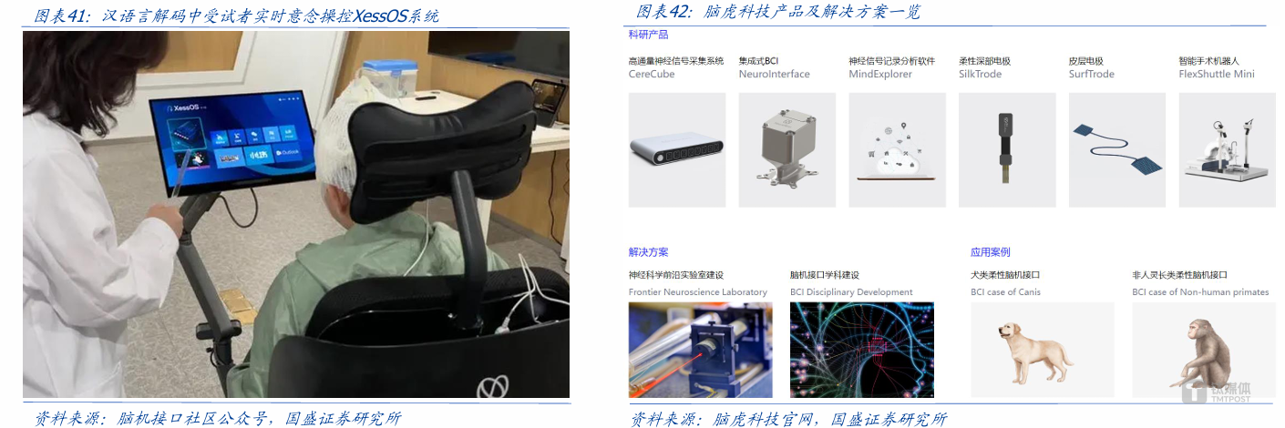 在医疗领域,非侵入式脑机接口已成为神经康复科室的标准工具之一。国内康复医疗器械企业翔宇医疗的已有两款脑电采集装置获得国家二类医疗器械注册证,并计划在 2025 年推出 20-30 款集成脑机接口技术的智能康复设备,覆盖睡眠障碍干预、脑卒中后认知与运动功能恢复等多个场景。其优势在于审批路径相对清晰,可在医院康复科、社区康复中心甚至家庭场景中灵活部署,实现早期、频繁的干预。