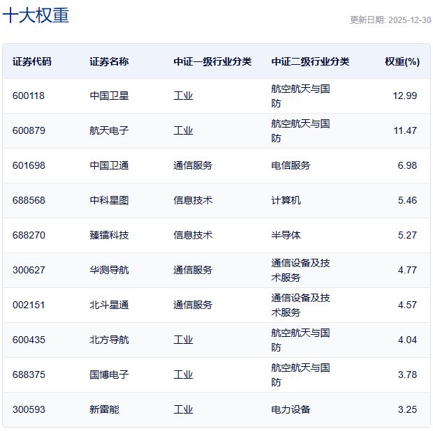 中证卫星产业指数选取 50 只业务涉及卫星制造、卫星发射、卫星通信、卫星导航、卫星遥感等领域的上市公司证券作为指数样本,反映卫星产业上市公司证券的整体表现。