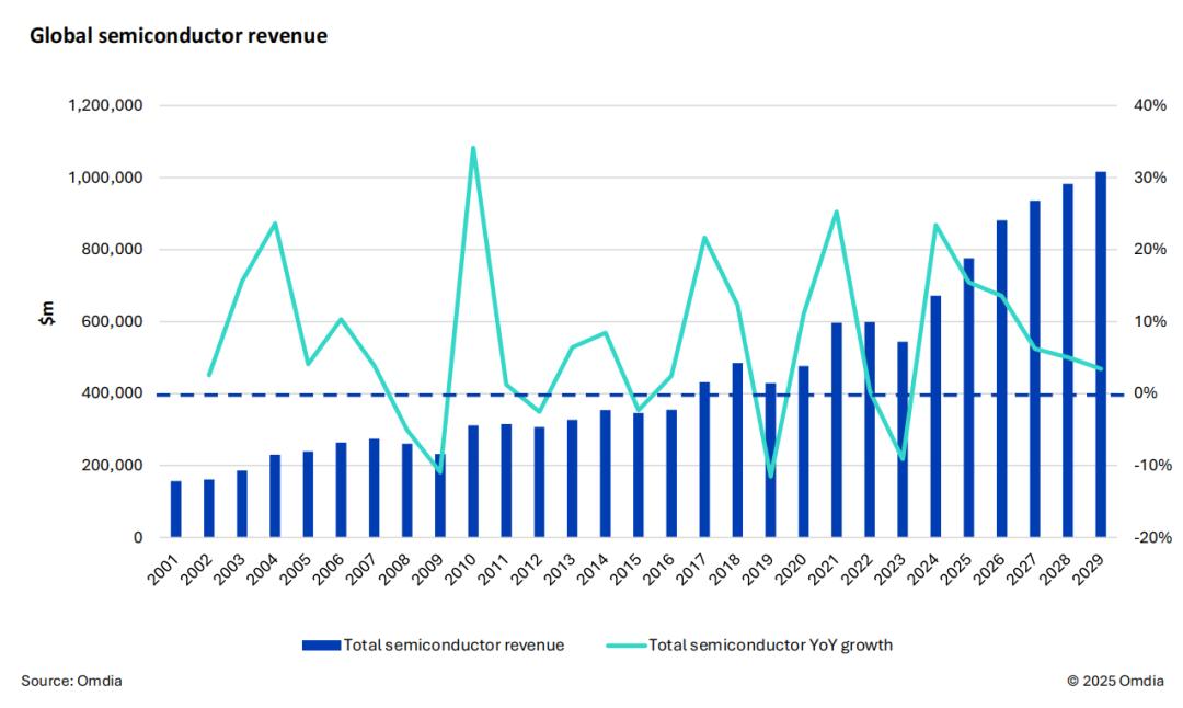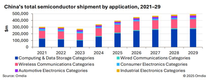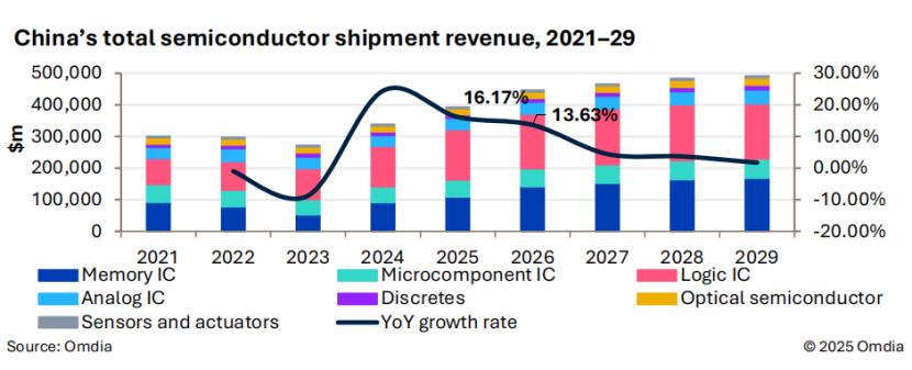 Omdia 表示,2025 年,中国半导体市场预计将实现显著增长,市场规模达 3930 亿美元 (同比增长 16% 以上),主要得益于人工智能数据中心的投资推动。