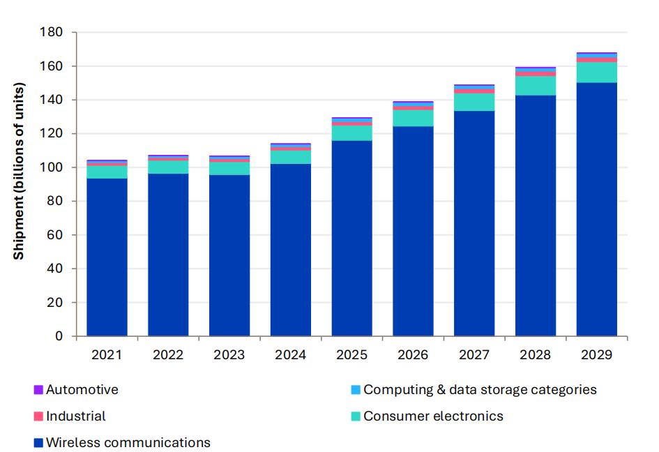 2021-2029 年中国按应用划分的半导体出货量总量
