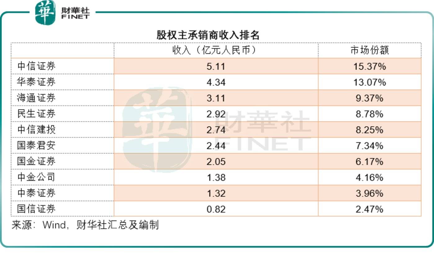 若两家券商合并,其今年以来的股权承销金额或可达到 184.85 亿元,仍低于第三位的华泰证券。