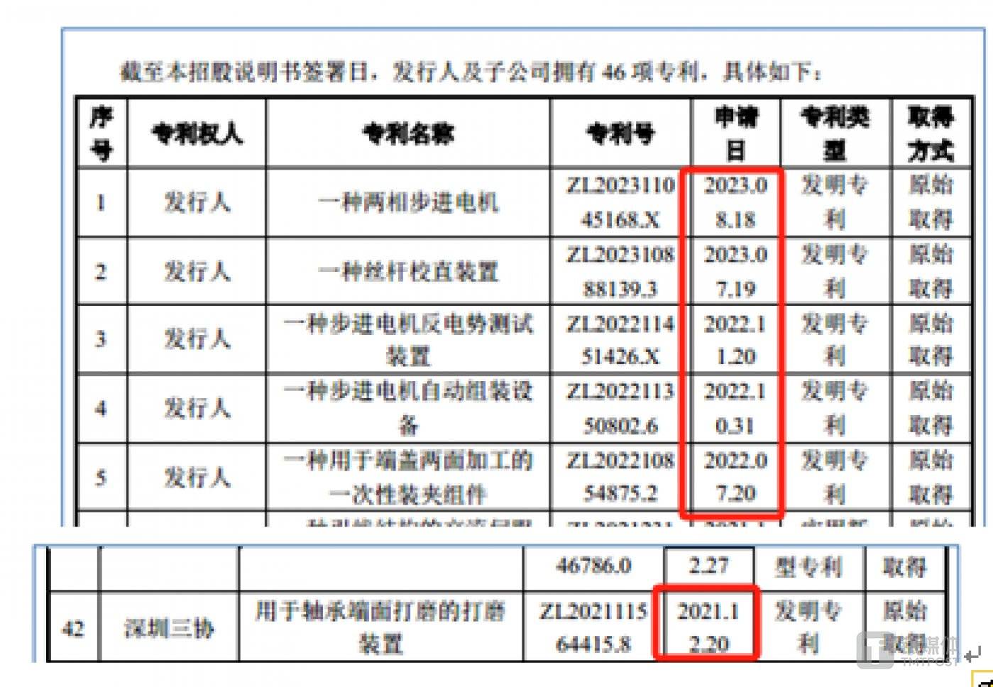 钛媒体 APP 注意到,三协电机在引入雷赛智能入股后,雷赛智能就始终霸占着公司第一大客户的头衔,并且两者之间的交易也较为 「暧昧」。而在科研方面,三协电机在研发费用率长期低于同行均值的情况下,到了 2023 年上半年,毛利率却突然反超同行均值,特别是发明专利方面,公司的发明专利均是近 3 年才获得的。