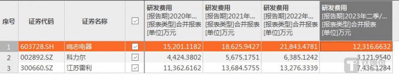 研发费用方面。报告期内,三协电机的研发费用分别为 747.76 万元、847.93 万元、1064.33 万元,而三协电机同行可比公司鸣志电器、科力尔、江苏雷利的研发费用情况如下: