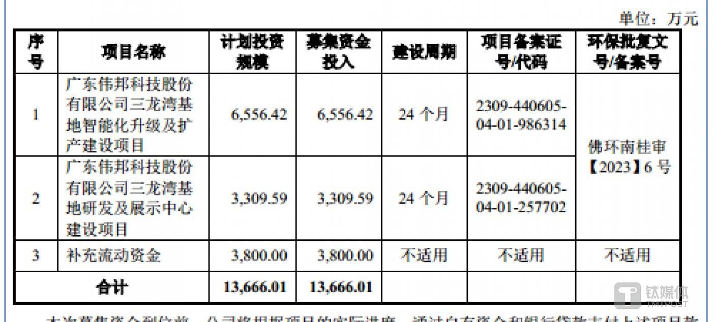 近期,广东伟邦科技股份有限公司 (下称 「伟邦科技」) 提交了招股说明书,拟北交所 IPO 上市,公开发行不超过 1248 万股。公司此次欲募集 13666.01 万元分别用于伟邦科技三龙湾基地智能化升级及扩产建设项目、伟邦科技三龙湾基地研发及展示中心建设项目、补充流动资金。