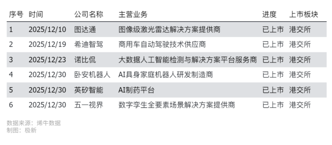图六:2025 年 12 月我国人工智能领域 IPO 事件 (数据来源:烯牛数据)