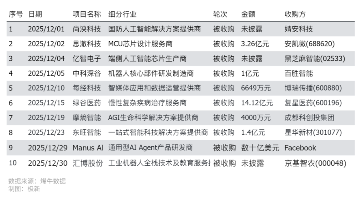 图八:2025 年 12 月我国人工智能领域 Pre-IPO 事件 (数据来源:烯牛数据)