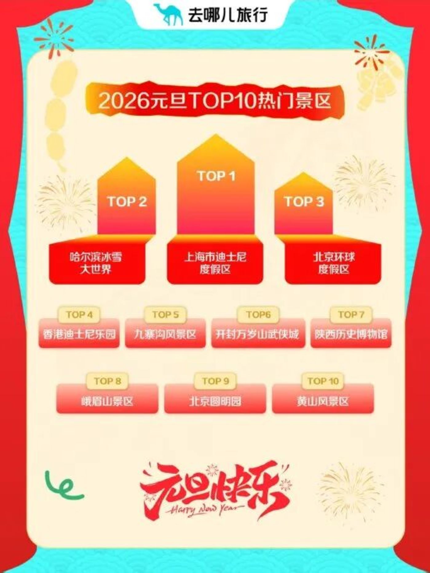 中式主题乐园 「逆袭」 进入热门景区,资料来源去哪儿 《2026 元旦 TOP10 热门景区》