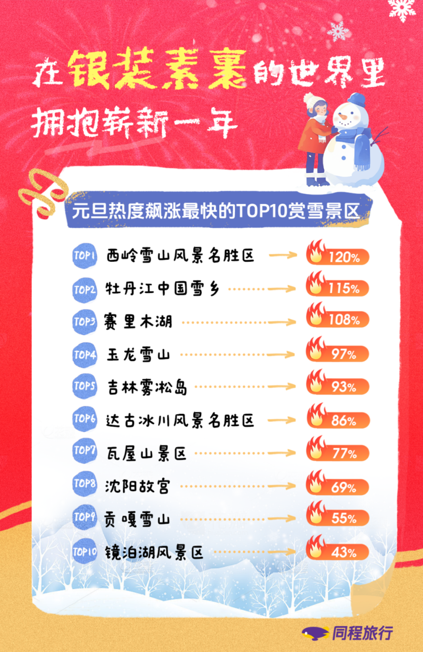 北方 「冰雪」 景区热度高涨稳站 C 位,来源同程 《2026 元旦假期旅行消费报告》